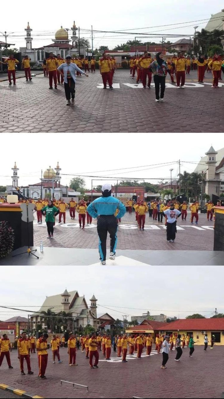 Dipimpin langsung oleh seorang instruktur senam yang enerjik, para pejabat utama (PJU), perwira, anggota, serta ASN Polres Kobar terlihat antusias mengikuti setiap gerakan, menjadikan olahraga ini sebagai momen penyegaran fisik sekaligus mental di tengah padatnya dinamika tugas kepolisian.