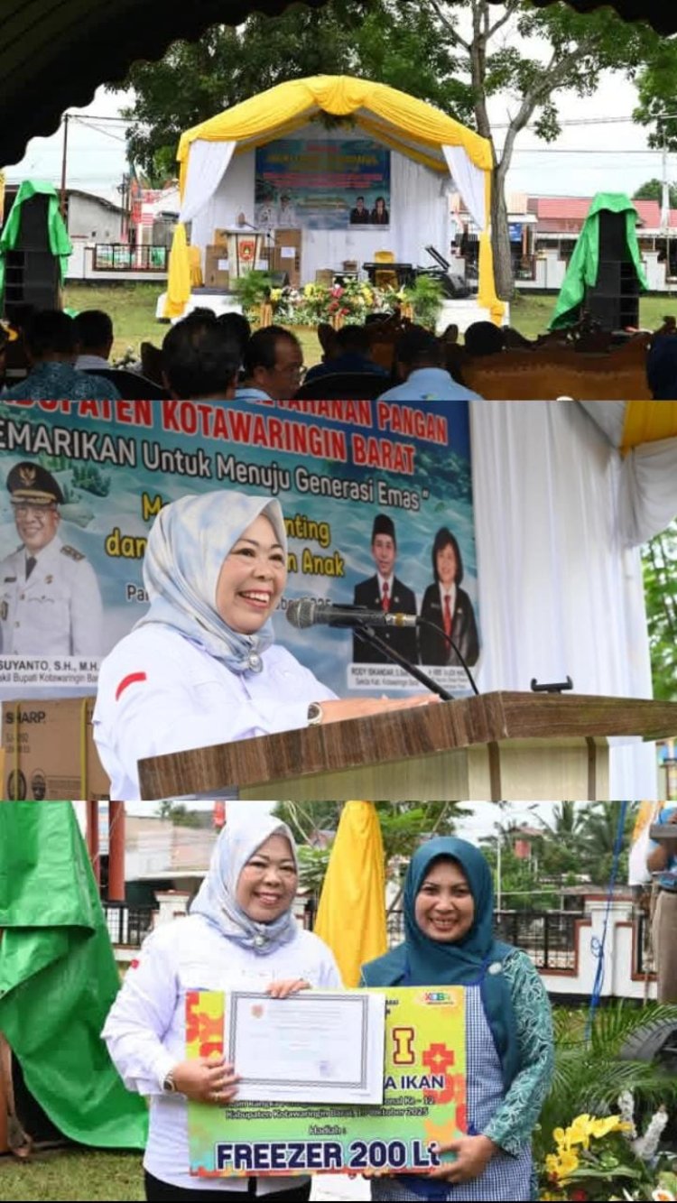 Kegiatan yang berlangsung Rabu (15/10/2025) tersebut dihadiri langsung oleh Bupati Kobar Hj. Nurhidayah, S.H., M.H., bersama Wakil Bupati Suyanto, S.H., M.H., dan diwarnai berbagai agenda menarik seperti Lomba Masak Serba Ikan (LMSI), Gerakan Pangan Murah (GPM), serta bazar UMKM yang menampilkan produk-produk olahan ikan dan hasil perikanan lokal.