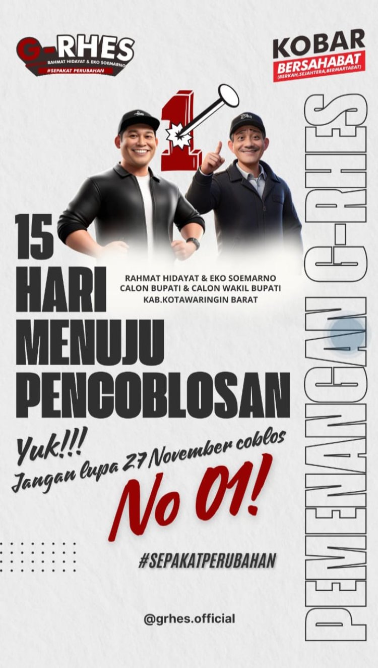 Kini, dengan hanya 15 hari tersisa, GRHES semakin gencar mendukung pasangan Rahmat-Eko melalui sosialisasi langsung ke desa-desa dan berbagai platform media sosial. Mereka mengajak masyarakat Kobar untuk mengingat satu hal: Pilkada ini adalah kesempatan emas untuk menjemput perubahan. Pilihan di tangan Anda akan menentukan arah kebijakan dan pembangunan Kobar untuk lima tahun ke depan.